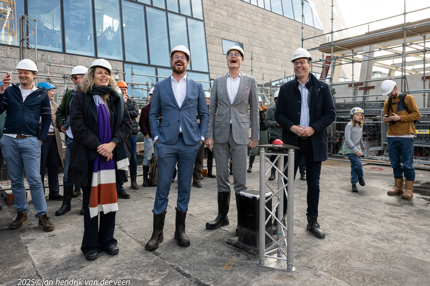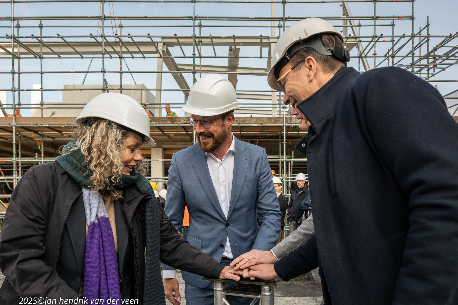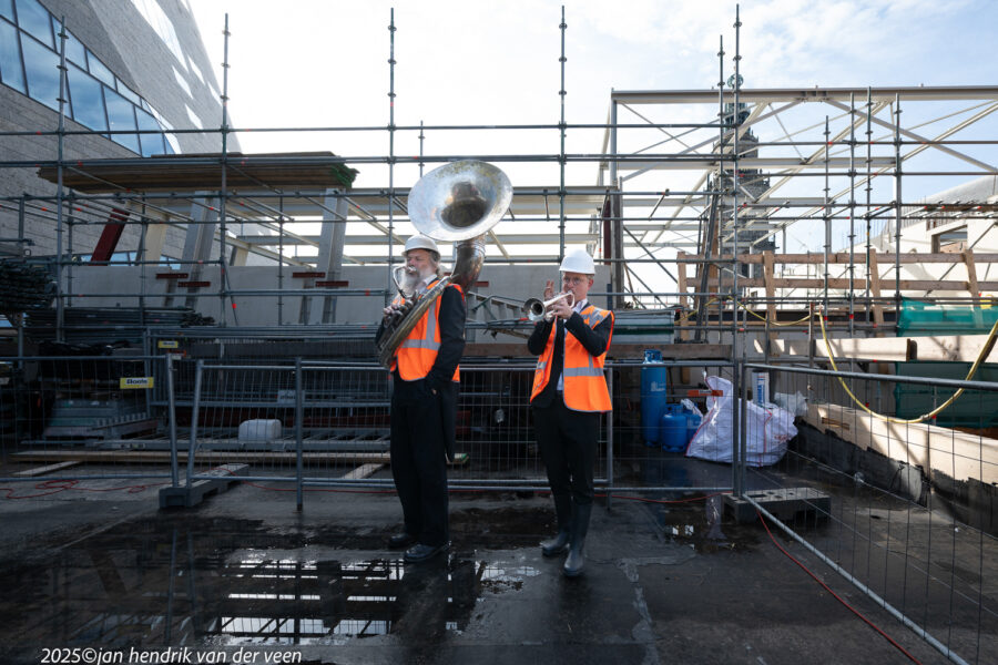 Wethouders Van Niejenhuis en De Wrede spraken bij de viering van het hoogste punt en de bekendmaking van de naam van het kunstencentrum aan de Sint Jansstraat